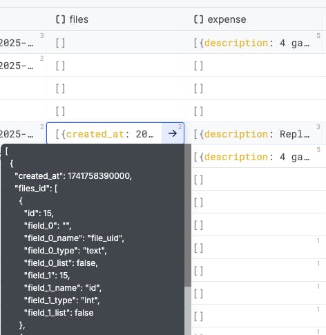 In my records I have some fields that are Objects, with an Array. The example here is 'files' .