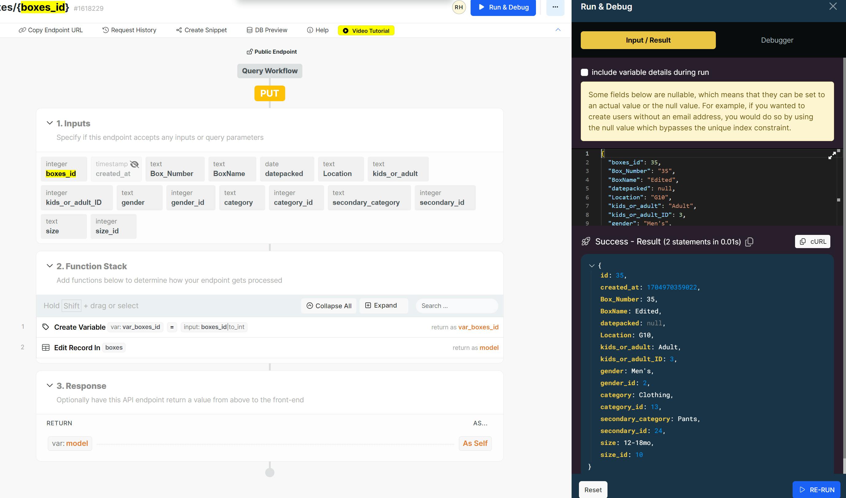 Hi - I am trying to edit a record in Xano from bubble. When I do run and debug it works fine in Xano, editing a record but when I use the same values in bubble it doesn't work.