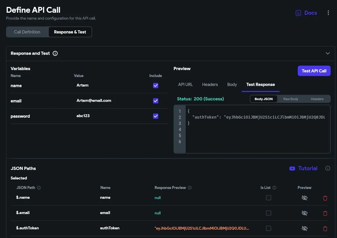 I'm returning a status:200 with a successful auth token but the name and email are null. Brand new to Xano and not sure where I went wrong.