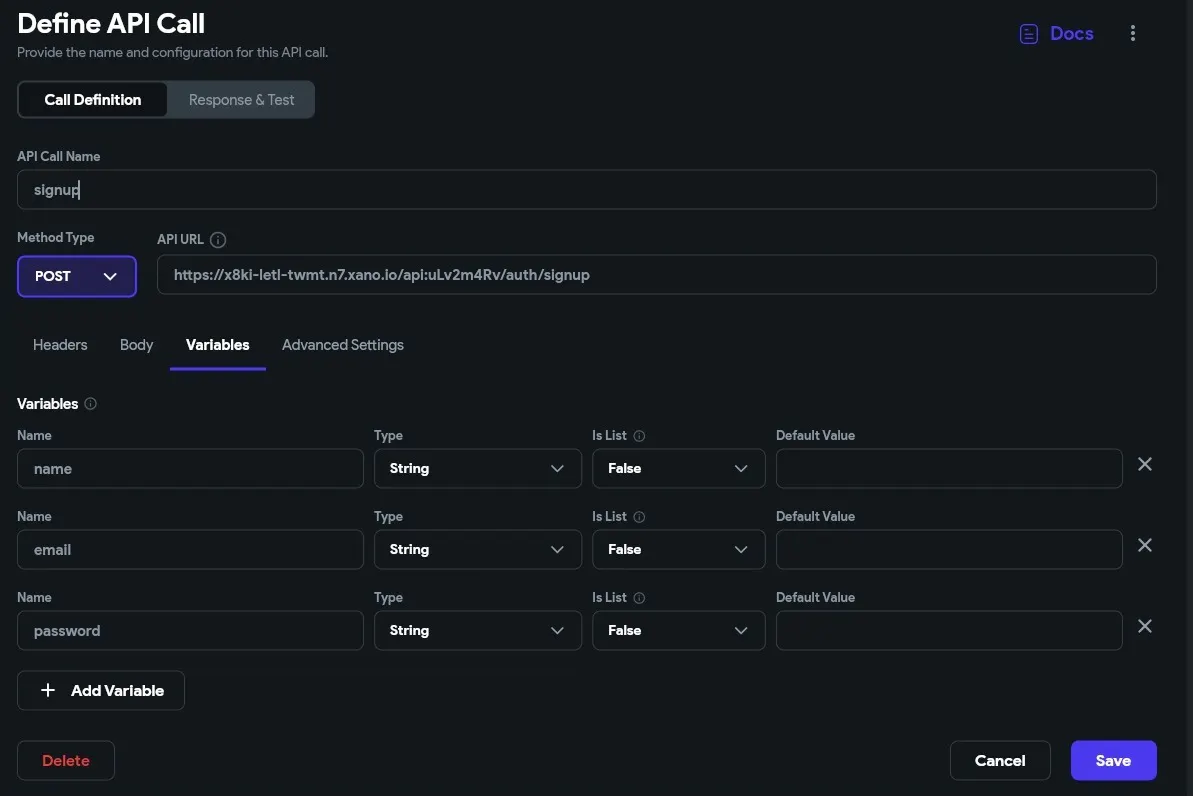 I'm following this YT video here: https://www.youtube.com/watch?v=kogyWy084d8&ab_channel=Xano