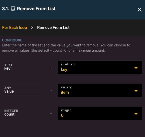 Another thing I noticed is that the 'Remove From List' function in redis doesn't have the option to put a name in the return variable.