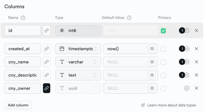 Table definition editor