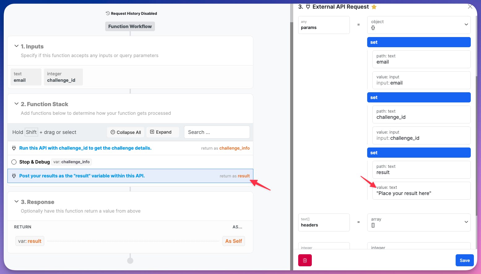 Congratulations! You've successfully begun the challenge! πBuild the logic to solve the challenge. This can be done within the function stack inside the