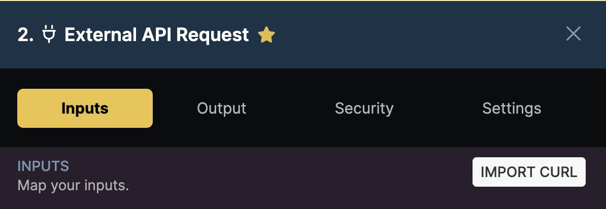 § To create this one, use curl command from Stripe docs here. To do so, in Xano add External APi Request => import curl => paste curl command from Stripe you just copied.